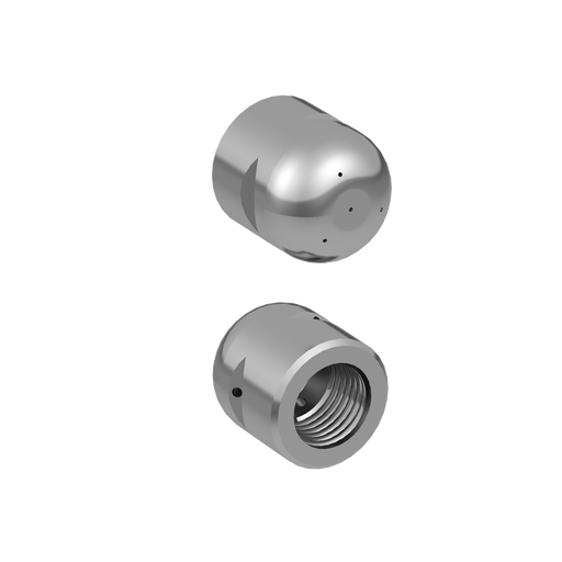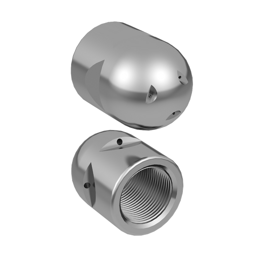 Vissa av våra kunder har önskat ett spetsigt munstycke med fyra strålar framåt och färre strålar bakåt. De främre strålarna består av en frontstråle som går rakt fram samt tre strålar vinklade ut mot rörväggen. Vi har därför under senaste åren designat vår egen serie, tillverkade i härdat rostfritt stål med effektiv balans med indragning och framåtspolning. SPETSIGA MUNSTYCKE™, som även kan kallas spjutmunstycke, Quattro eller pyramiddysa, finns både som Klass 1 från ¼” gänga och upp till 1” gänga eller som Klass 2 som har utbytbara dysinsatser. Insatserna kan antingen vara tillverkade i härdat rostfritt stål eller med keramiska insatser, beroende på önskemål från kund. Det utbytbara dysorna möjliggör en mer precis anpassning av hålstorleken till varje unik spolbils pumpkapacitet. Dessa finns från ½” slanganslutning upp till 1 ¼”.
